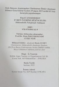Əsərin Türkiyədə nəşri və nüfuzlu beynəlxalq mükafata layiq görülməsi türk dünyasının elmi-mədəni məkanında Azərbaycan elmi fikrinin daha geniş tanıdılmasına xidmət edir. Bu mükafat isə həmin töhfənin beynəlxalq səviyyədə qəbul olunduğunu göstərir. Akademik Əhəd Canəhmədovun uzun illər formalaşdırdığı elmi-fəlsəfi baxışın məhsulu olan bu kitabın mükafatlandırılması Azərbaycan elmi üçün əlamətdar hadisə kimi dəyərləndirilir və ölkəmizin elmi nüfuzunun türk dünyasında daha da möhkəmlənməsinə xidmət edir.