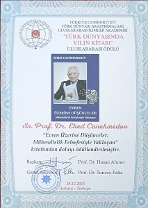 Görkəmli Azərbaycan alimi, akademik Əhəd Canəhmədov Türkiyədə nəşr olunan kitabına görə beynəlxalq səviyyəli nüfuzlu mükafatla təltif olunub.